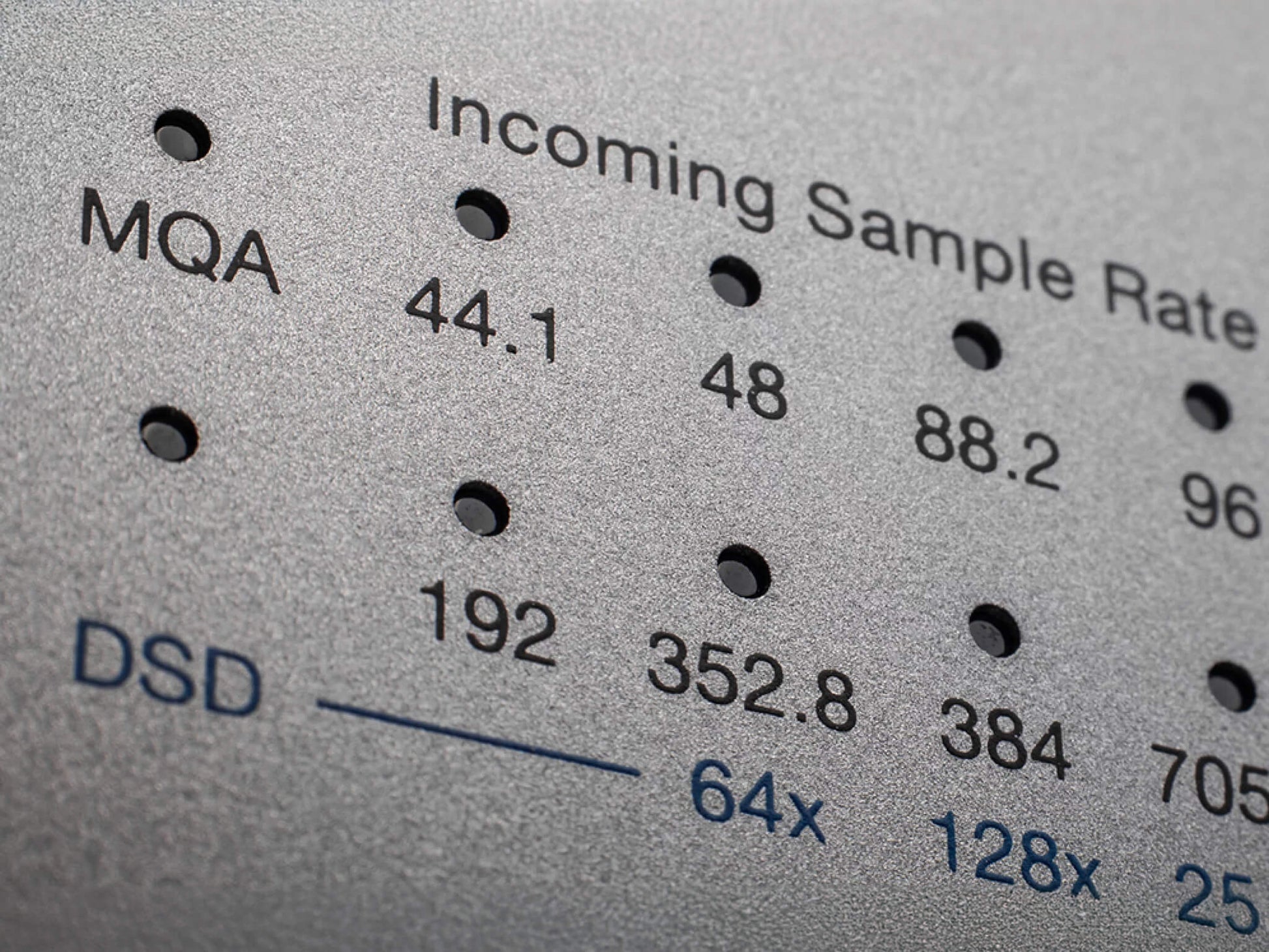 - Dual ESS SABRE ES9028Q2M Reference DACs – one per channel, handles digital audio up-to 24-bit/768kHz or DSD512