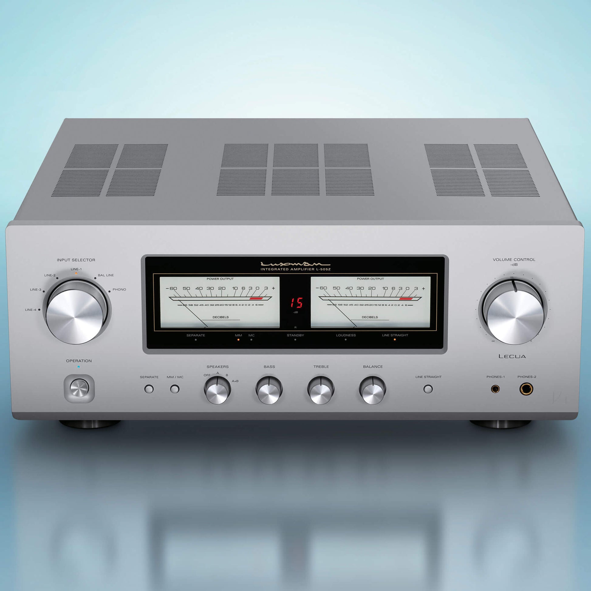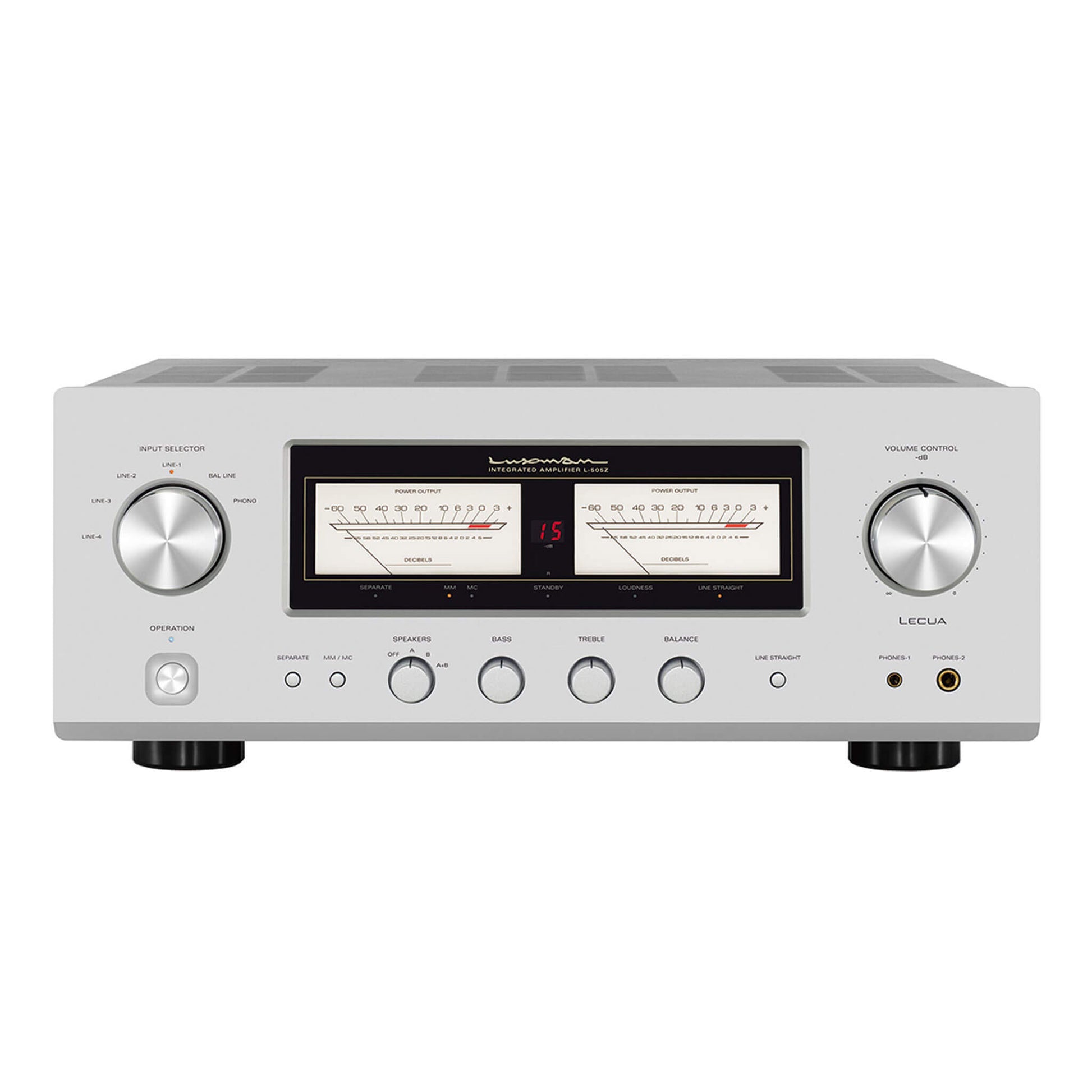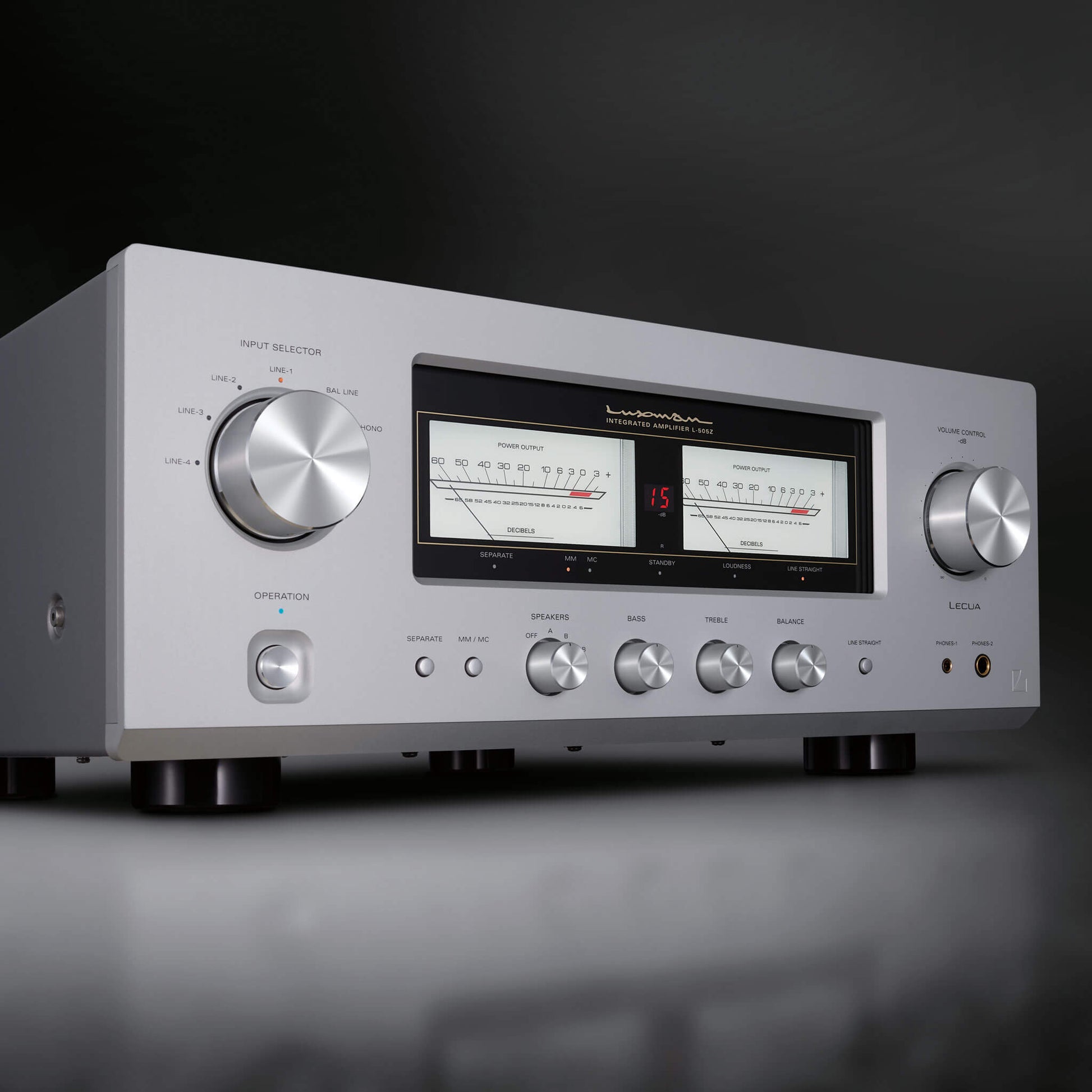A conservatively rated 100 watts per channel backed by a massive 540VA EI-type power transformer and custom-built capacitors. The robust power supply ensures the L-505Z handles complex musical passages with grace, never sounding strained, even at high volumes. Dynamic peaks are reproduced with authority and control.