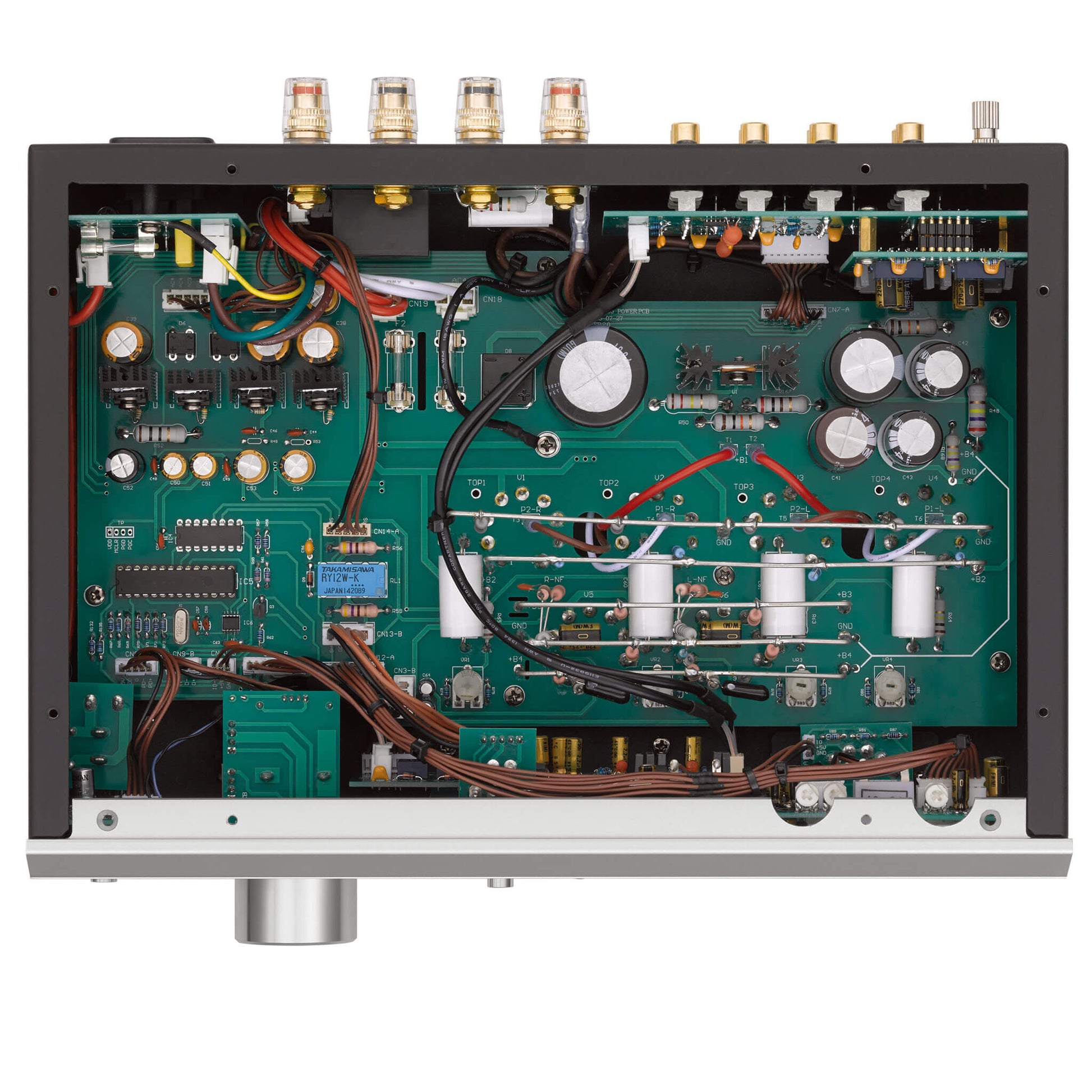 Hand-assembled in Japan with meticulous attention to detail. The rigid aluminum chassis provides excellent shielding and vibration damping. Internal layout follows shortest-path design principles to minimize signal degradation. Every unit undergoes extensive quality control testing before leaving the factory.